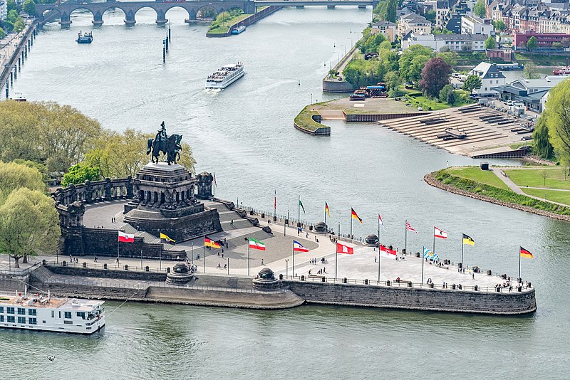 Aan het einde van de negentiende eeuw zijn alle landen in het hart van Europa samengegaan tot één nieuw land: Duitsland. Het kon niets meer en niets minder zijn dan de plek waar de Donau, de Rijn, de Weser, de Elbe en de Oder stromen. Waar anders, zou je bijna zeggen, kan zo een grote politieke gebeurtenis beter worden herdacht dan op een landtong op het punt zelf, waar twee rivieren samenvloeien. De Reuzenruiter had nergens beter kunnen staan.